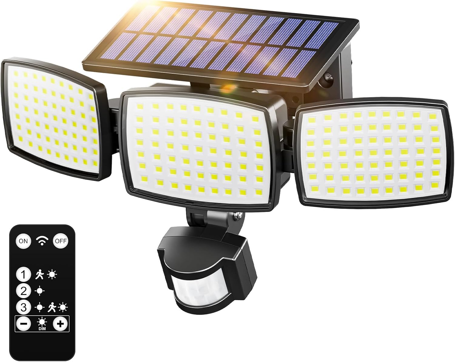 - Peasur Solar Security Lights Outdoor Motion Sensor (2 Pack) with Remote, 3 Modes and IP65 Wall Mount, 3 Adjustable Heads