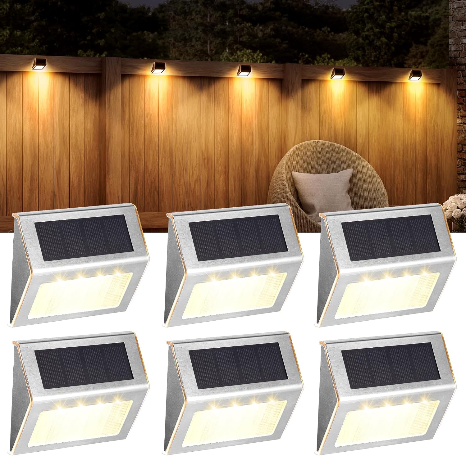 Solpex Solar Fence Lights Outdoor Garden (6 Pack) – Waterproof Stainless Steel Warm White LED Step Lights