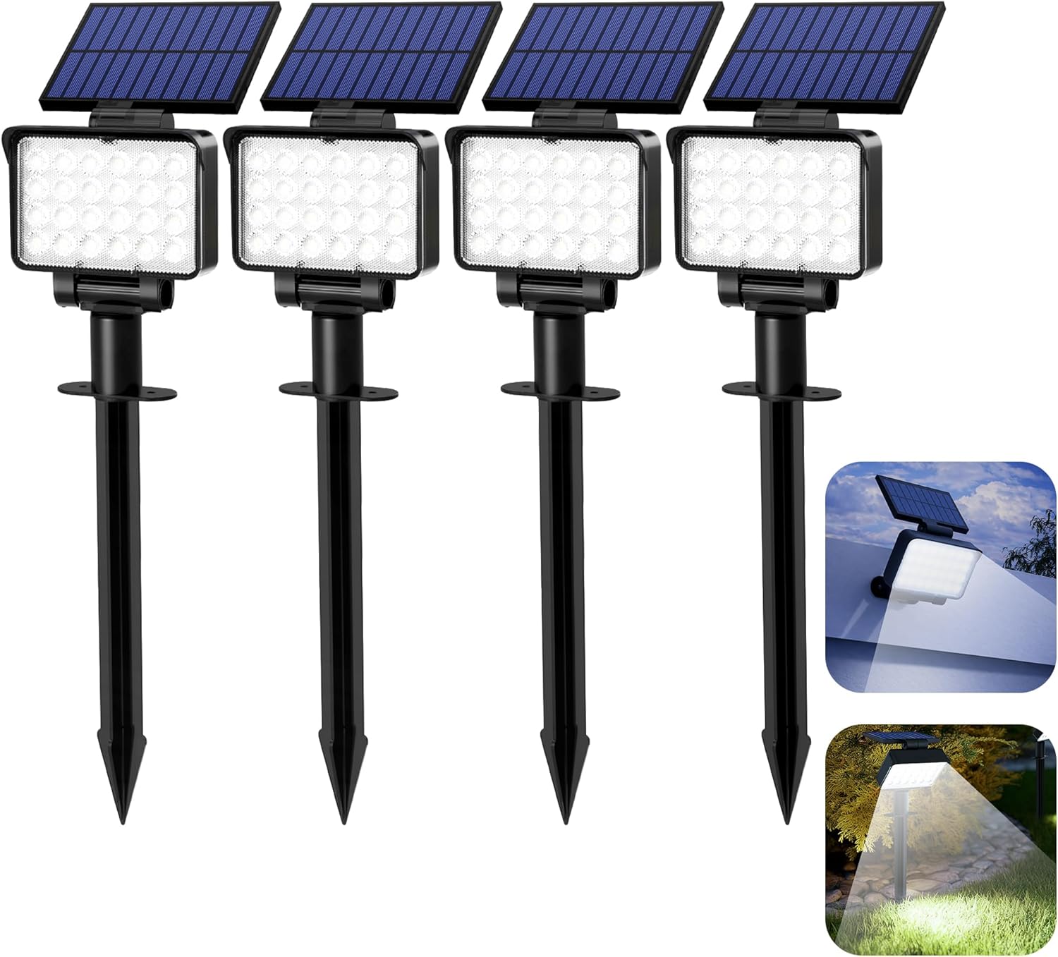 Solpex Solar Spot Lights Outdoor Garden (4 Pack) – IP65, 24 LEDs, 180° Panel, 3 Brightness Modes