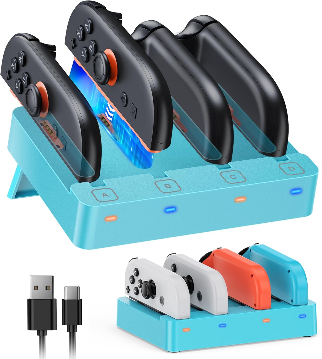 If you are juggling multiple Joy‑Con controllers, this Switch charger dock helps you keep charging simple and organised. It supports dual-generation use for Switch 2 and Switch 1 or OLED controllers, and it is designed to charge up to four controllers at the same time, according to the manufacturer. The dock also includes a foldable stand, so the controllers can sit in a more convenient position rather than being laid flat on a desk. 😊
