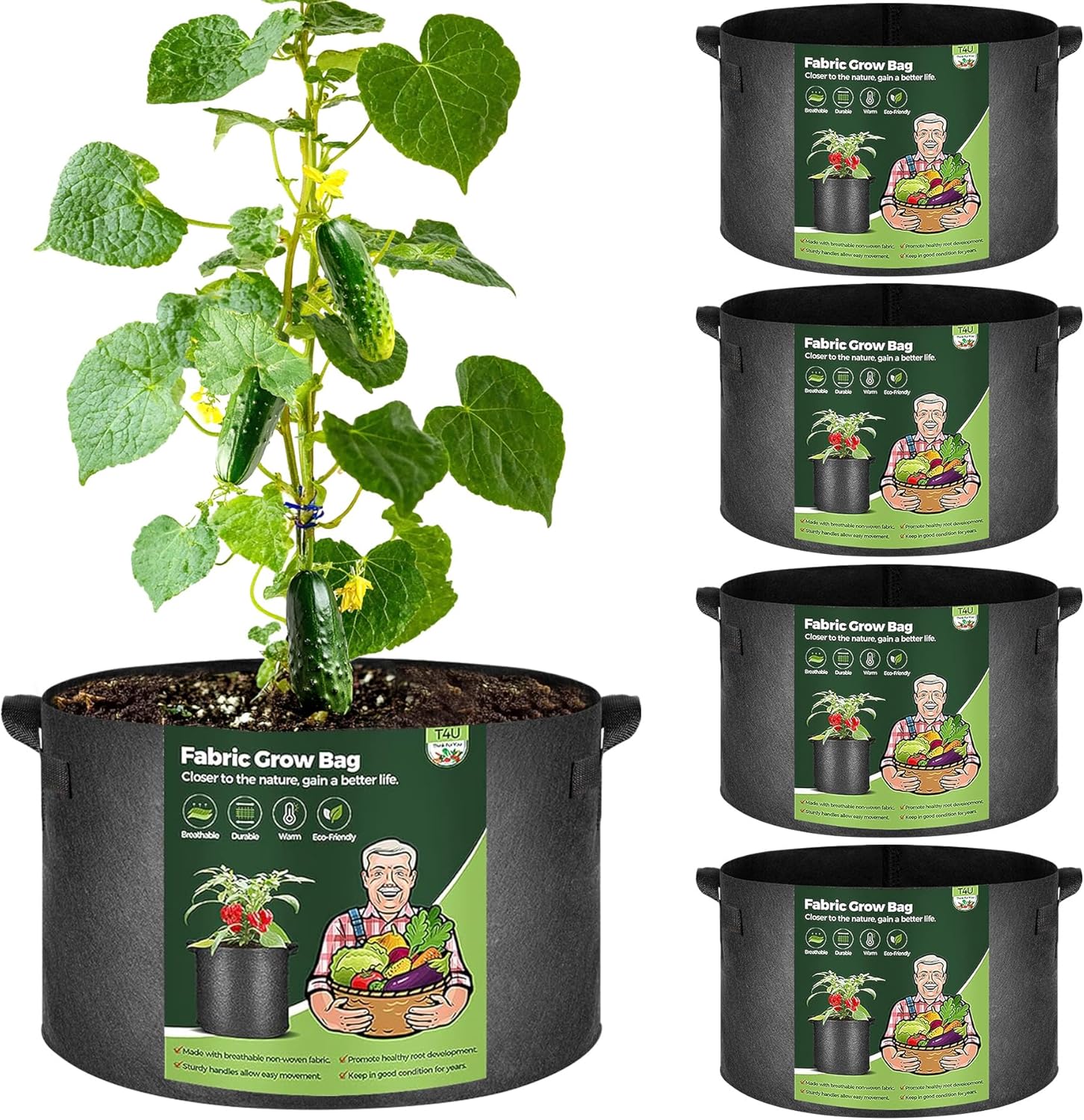 T4U 15 Gallon Plant Grow Bags with Handles (Pack of 5) – Thick Non-Woven Smart Fabric Pots