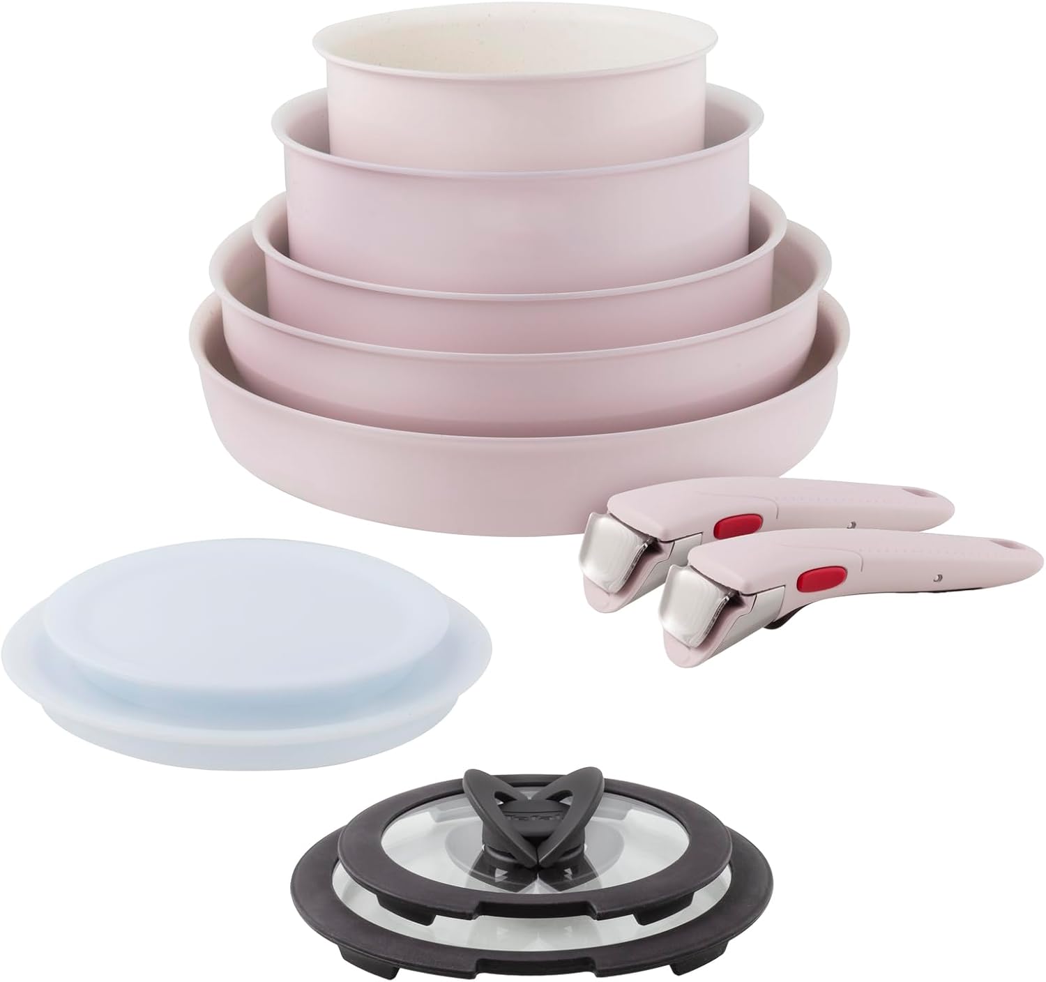 Tefal Ingenio Serenity 11-Piece Cookware Set (L830SB04) in Pink Clay – induction, stackable non-stick