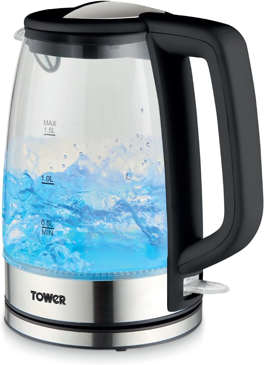 The Tower PT10090BLK is an electric kettle built around visibility: a glass body that lets you see the water level clearly, and also shows that “boiling illumination” effect while it’s running. If you’ve ever overfilled by accident (or you’re just trying to use exactly what you need), having a maximum fill line and an easy-to-read level helps on day one.