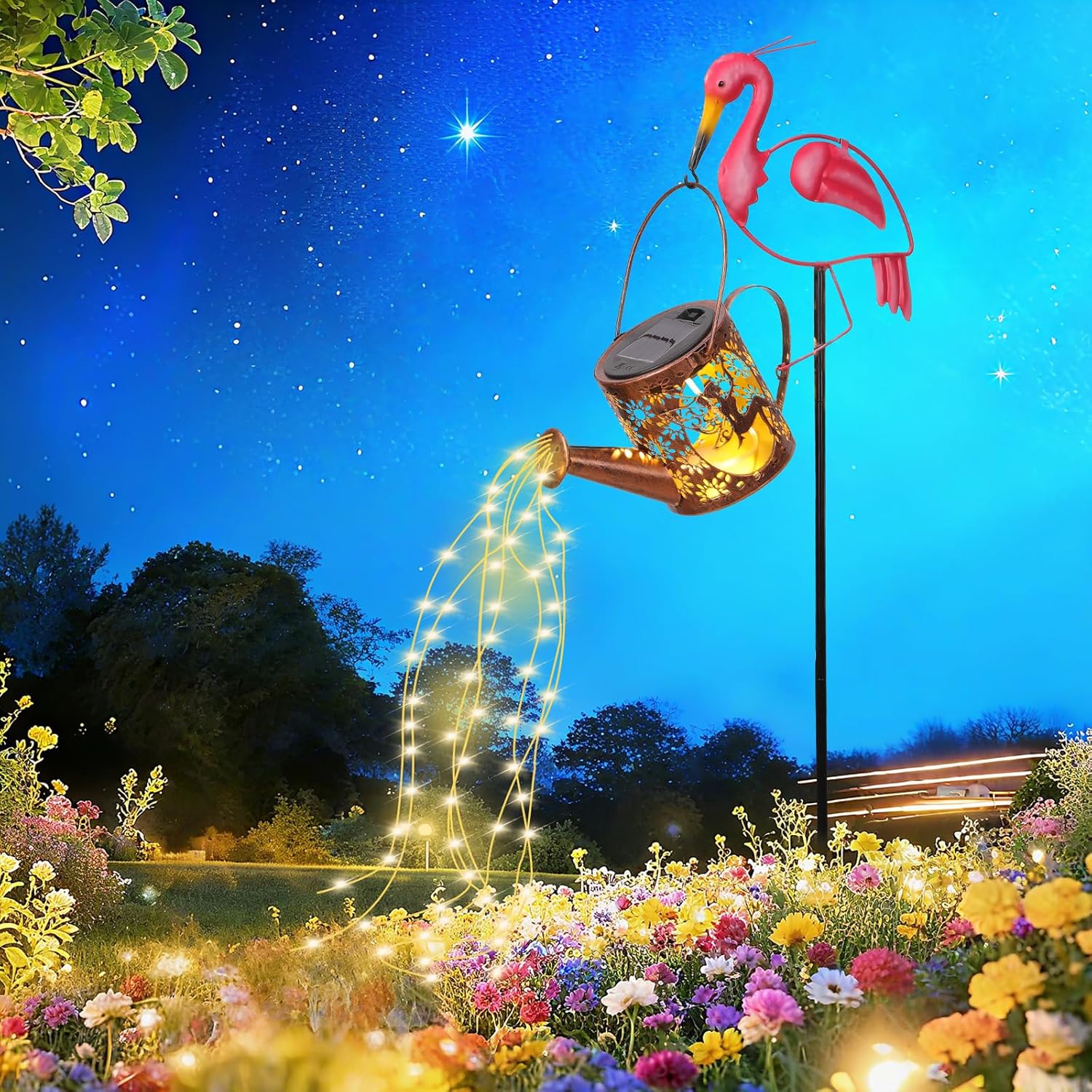 If you like garden lighting that feels a bit whimsical rather than purely functional, these solar watering can lights are easy to understand on paper. The design—watering can plus flamingo detail—aims to create a warm, romantic glow in outdoor spaces without running cables.