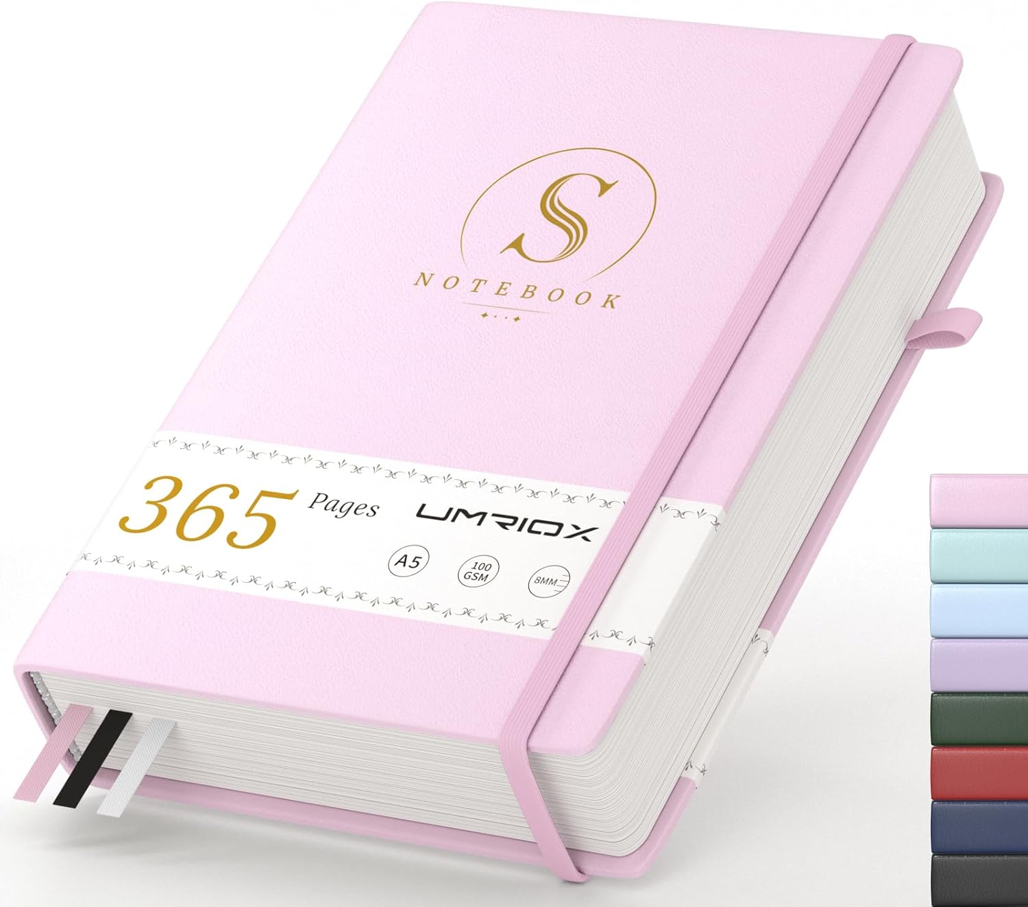 Umriox A5 Lined Journal Notebook (365 pages) – 100gsm thick paper, PU leather hardcover, pink