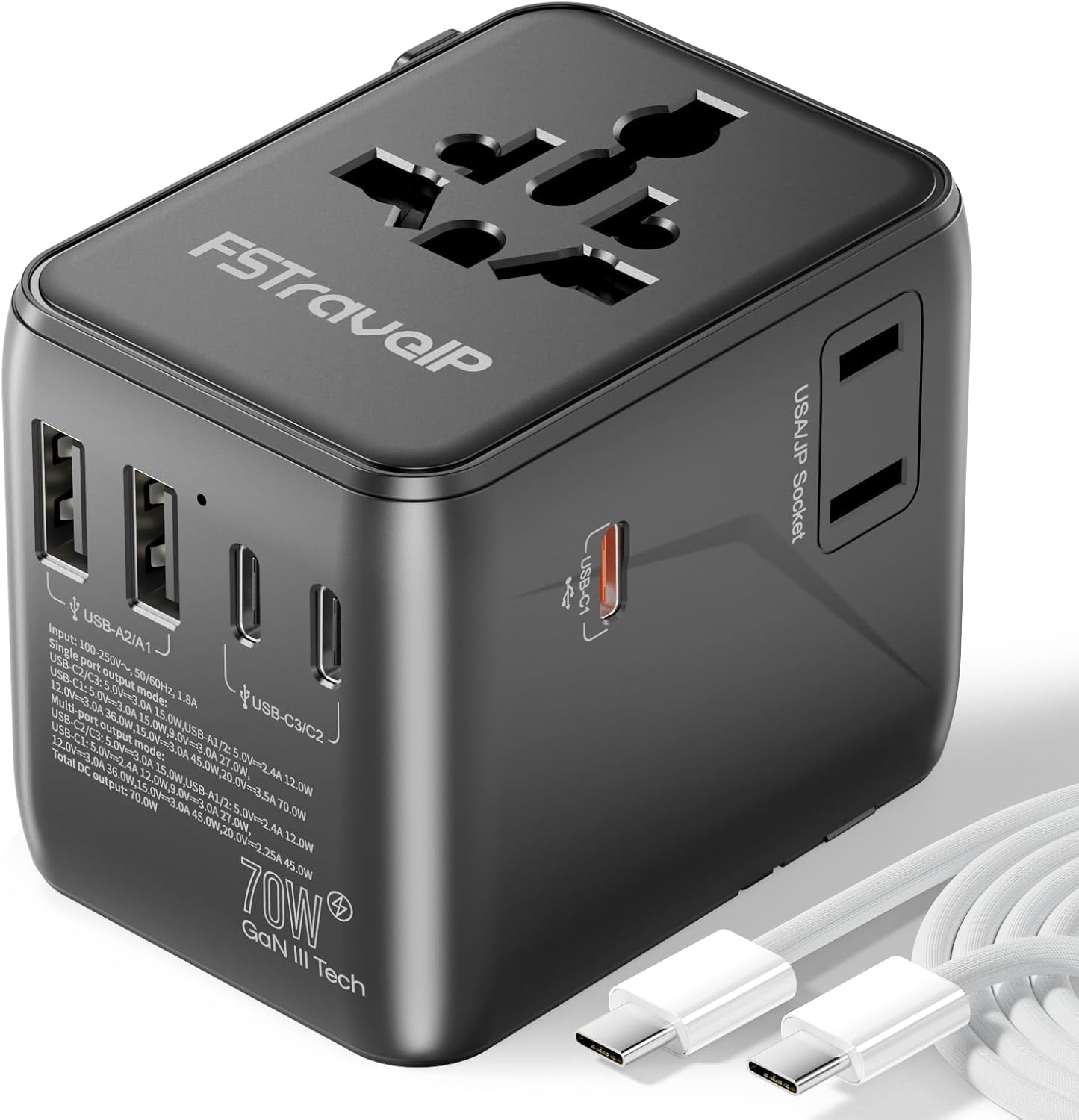 - Name: Universal Travel Adapter 70W Fast Charge