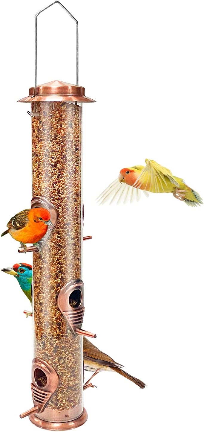 - Urban Deco Metal Bird Feeder Tube Hanging Feeders (6 ports) – Greencopper, weatherproof tube-style feeder
