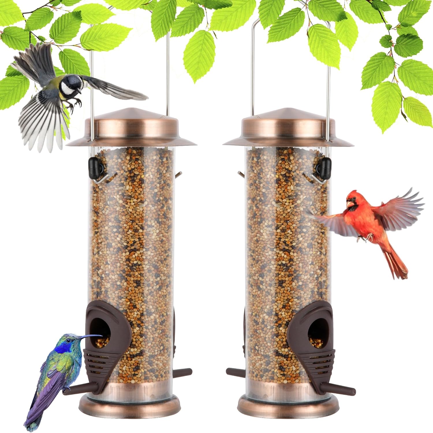 Urban Deco Copper-Finish Hanging Bird Feeders (2-port metal) – Weatherproof seed feeder, 2 pack