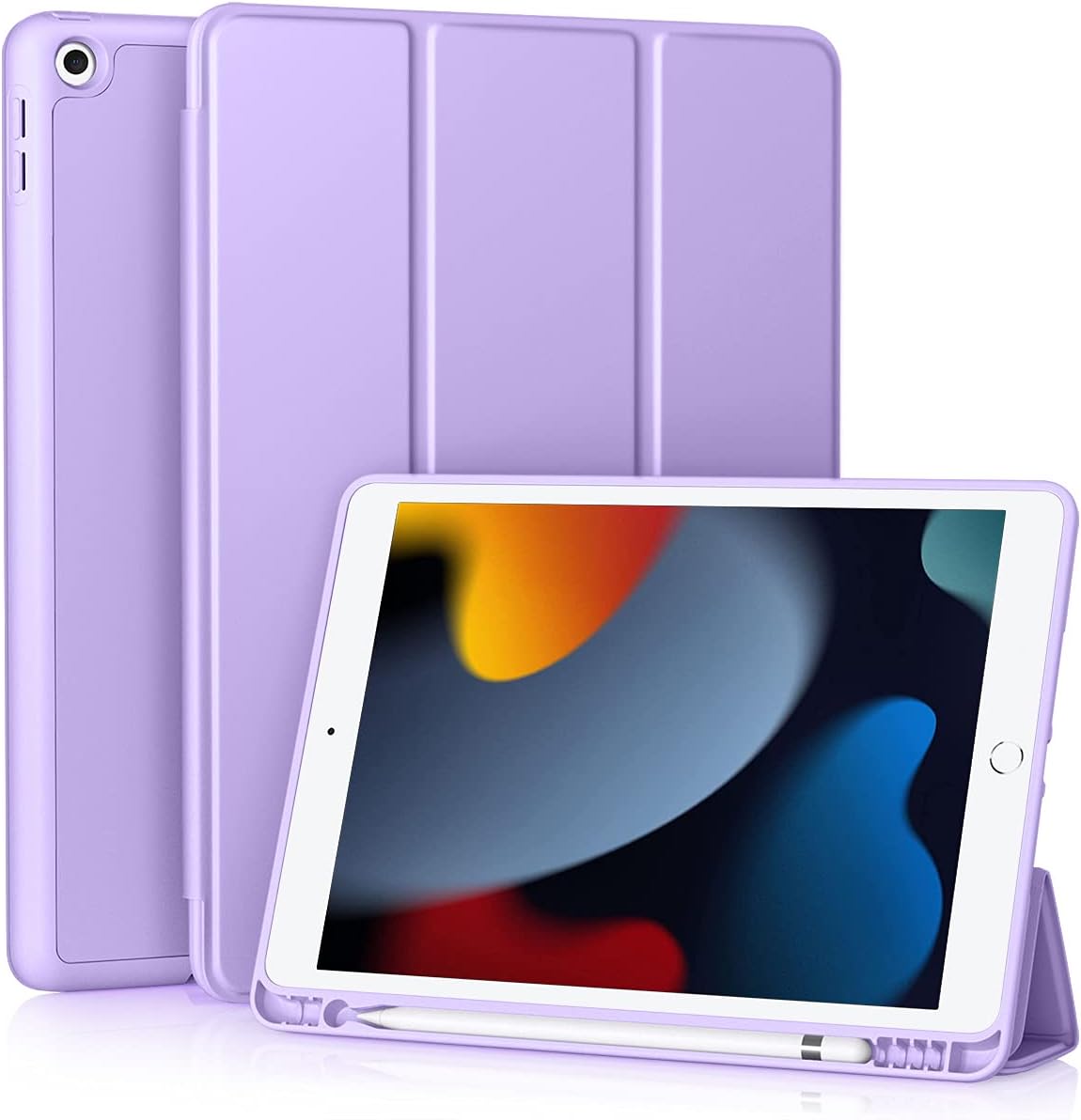 Vobafe iPad 10.2 case (7th/8th/9th gen, 2021/2020/2019) with pencil holder, lavender TPU cover