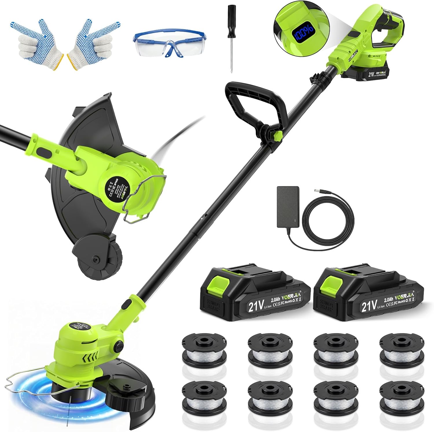 VOERJIA Cordless Grass Trimmer 21V (30cm) with 2 Batteries & Auto Line Feed, 2-in-1 Edger (Pro Edition LCD)