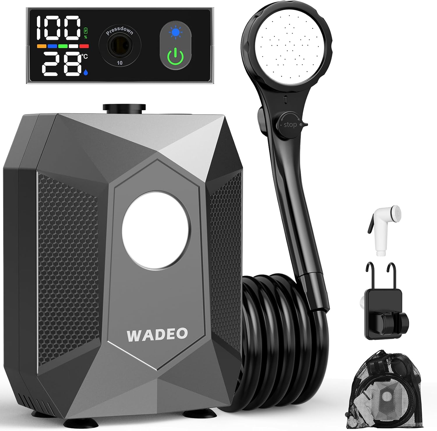 WADEO Portable Shower 6000mAh Rechargeable Camping Shower Pump with 4-Level Light