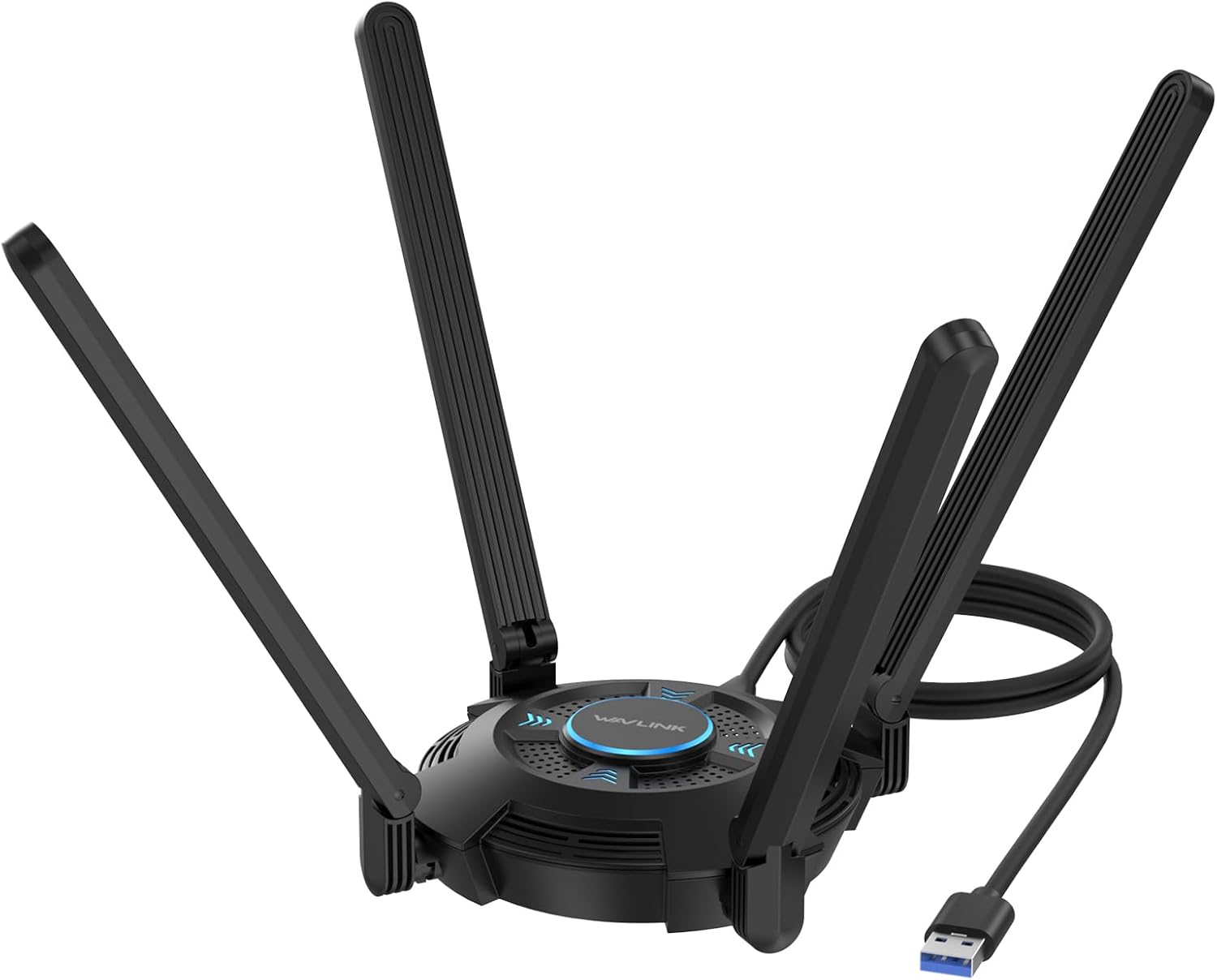 You will also appreciate the physical setup options. Four high gain rotatable antennas are included, and the cable length gives you room to adjust where the dongle sits. Plus, there is a small usability detail, you can click the WAVLINK logo on the top of the device to switch the LED light on and off, so it does not have to be constantly distracting on a desk. 🌟