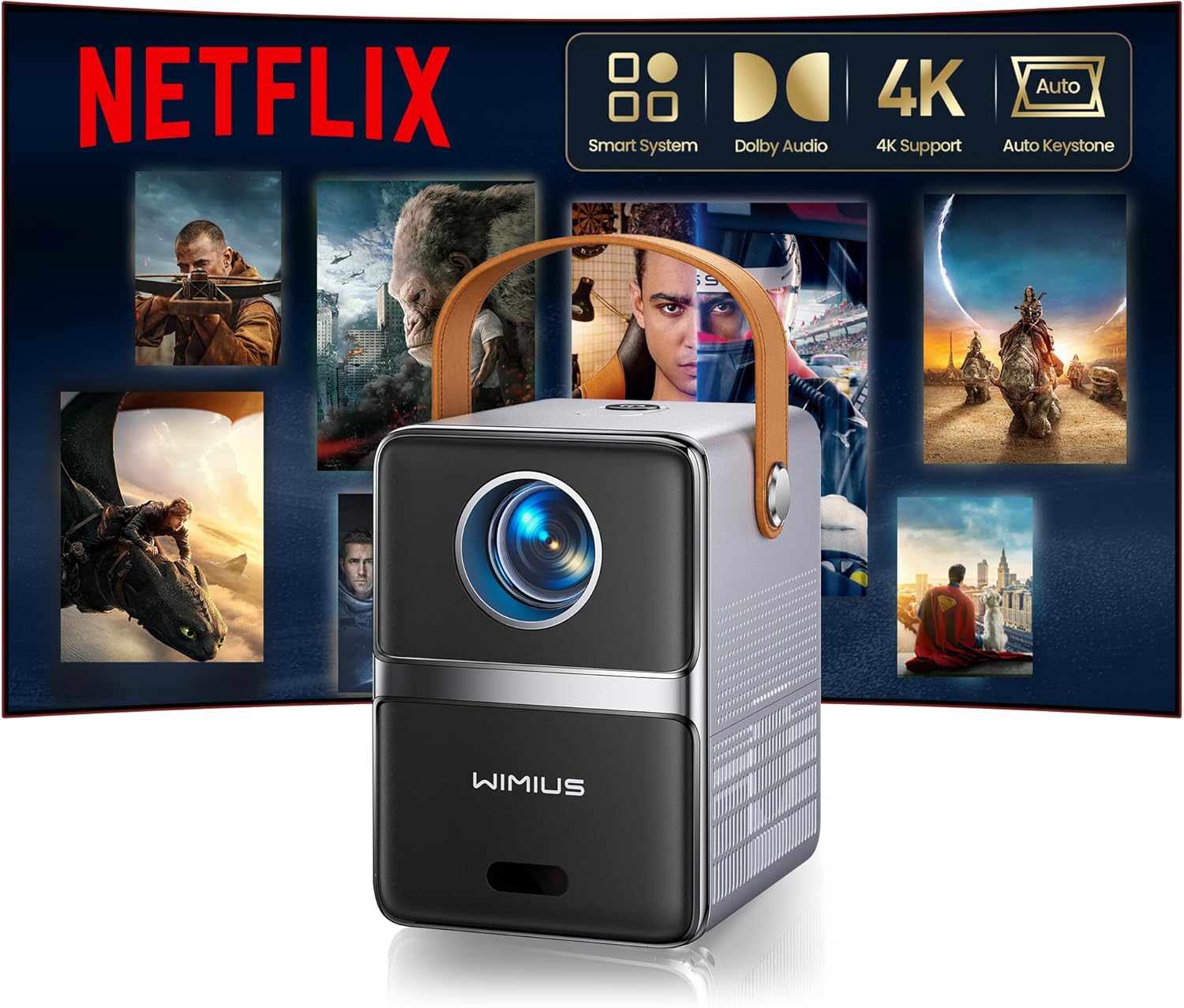 The WiMiUS 4K Mini Projector (Netflix Ready) P61 PRO is a compact, smart portable projector aimed at everyday viewing at home. It’s positioned as a “short-throw” style home cinema option, with the promise of an easy setup and a squared image without lots of fiddling. If your goal is bedroom movies, relaxing on the sofa, or occasional outdoor sessions (garden wall, patio screen, that sort of thing), this is the kind of projector that’s designed to make entertainment feel quicker to start.