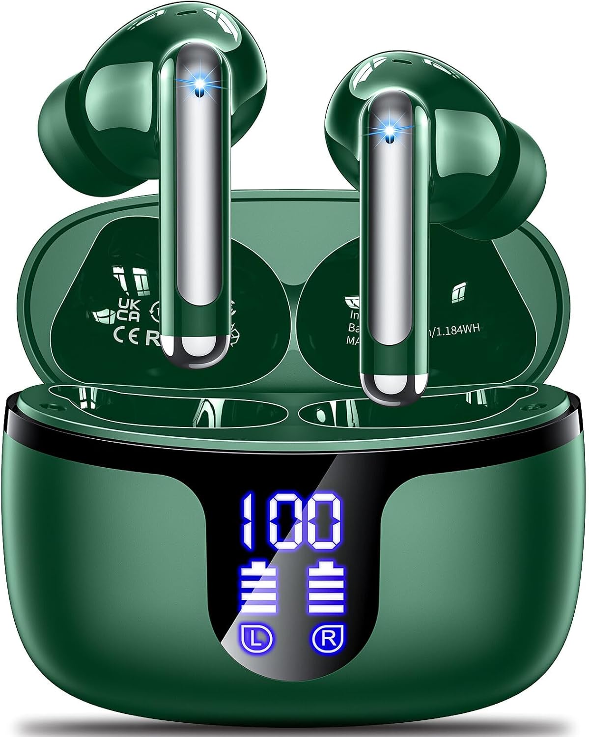 Wireless Earbuds Bluetooth 5.3 in-ear with 4 ENC Mic, 42h battery, IPX7 waterproof and LED display (Green)
