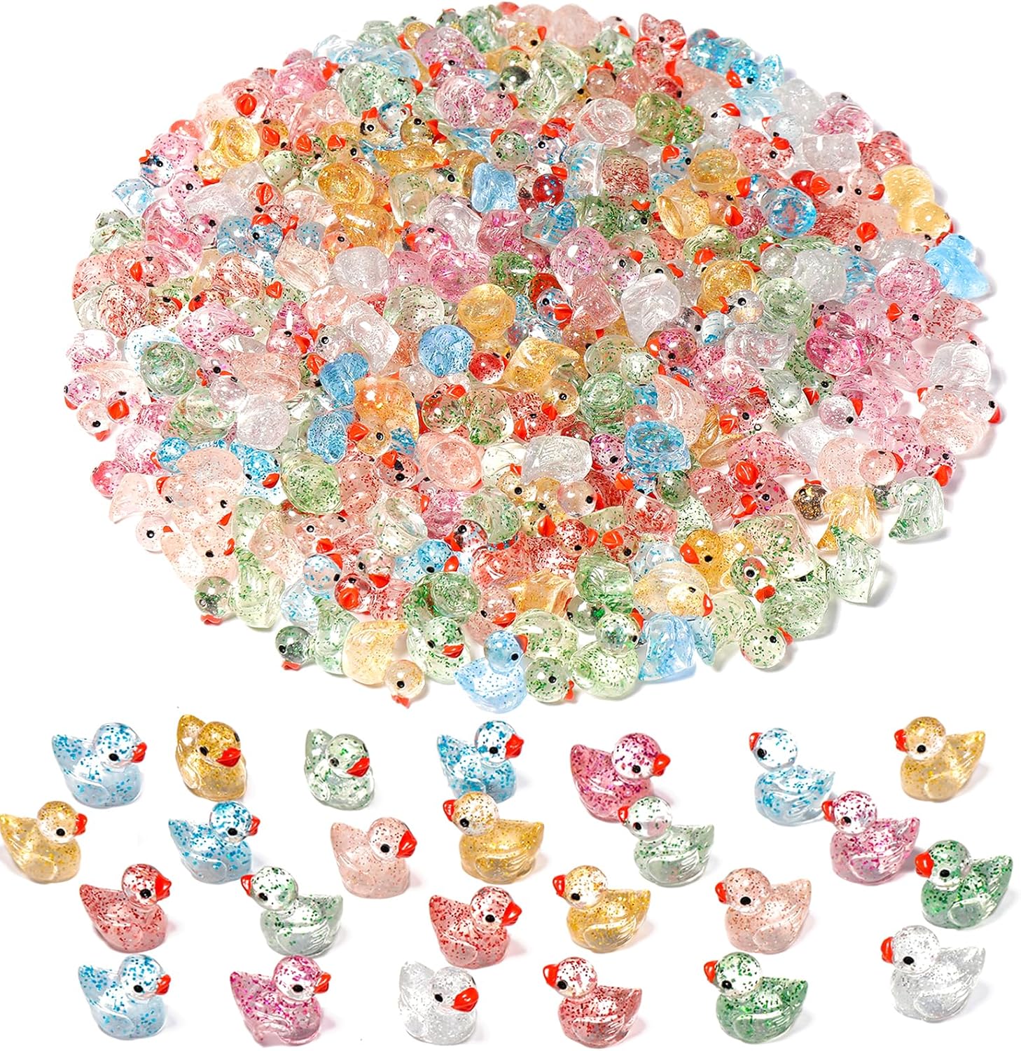 WIURGOHA 150pcs Mini Glitter Resin Ducks for Dollhouse, Aquarium & Micro Landscapes
