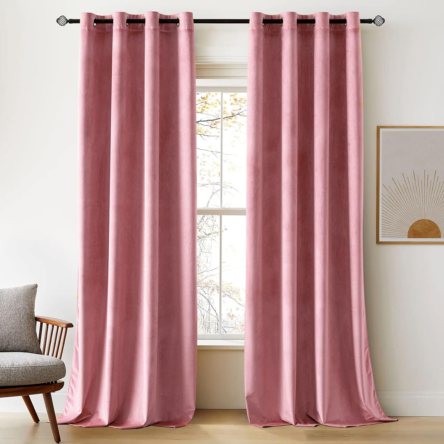 The combination of dense velvet and substantial weight gives the drapes both thermal insulation and a sound-dampening effect, useful in busy homes or flats. The top-mounted metal grommets ensure the panels glide easily on most standard curtain rods and remain aligned when drawn. The brushed surface catches light subtly, so the blush pink tone adds warmth without overpowering décor. Note that sizes are measured by hand so expect a small 2–3cm variation as stated by the maker. 🎀