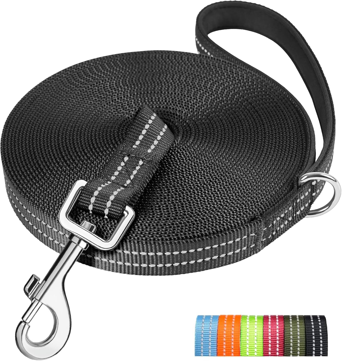 It’s worth considering if you want a long line for recall and controlled freedom, and you specifically like the idea of reflective visibility plus a softer padded handle for calmer handling. The stated pulling tolerance and the heavy-duty rotating hook are there to support proper training use, not just casual walks.