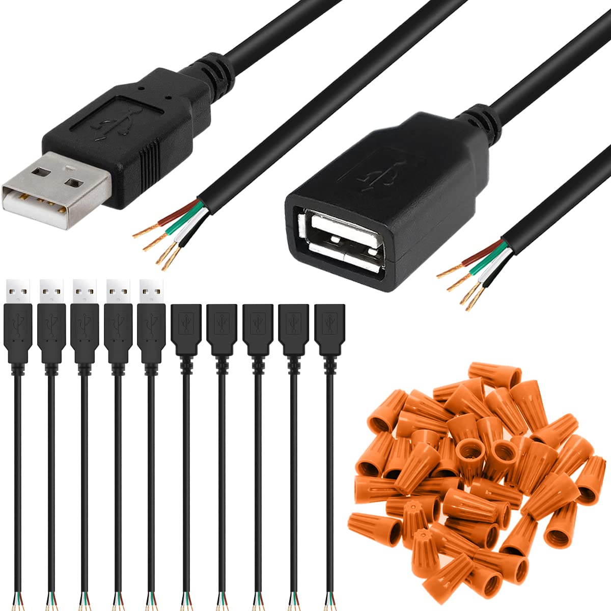 Xiatiaosann USB 2.0 Type A open-wire cable set for Arduino-style DIY (5 male + 5 female, 4-pin)