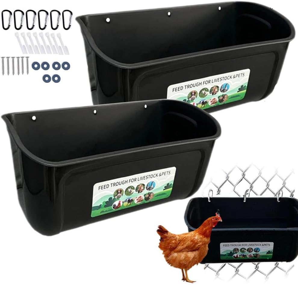 This YEASQGS 2-pack of extra large hanging fence feeders is designed to hold feed and make it easier to keep a run or coop tidier. The core idea is simple: instead of a feeder sitting on the ground, it’s meant to hang from fencing or be mounted to a fence or wall. On paper, that positioning can help reduce spill and keep feed cleaner, which matters a lot when you’re running a bigger flock or keeping birds alongside smaller livestock.