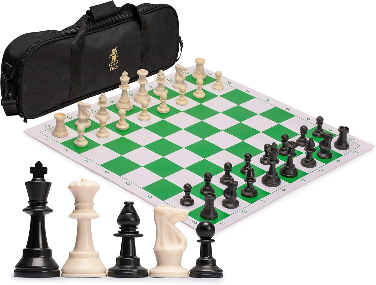 If you want a chess set that feels “serious” without living in a drawer, a roll-up board can be a smart compromise. This Yellow Mountain Imports Regulation Tournament Roll-Up Staunton Chess Game Set comes as a tournament-level kit built around a vinyl, magnetic board that rolls for storage and travel.