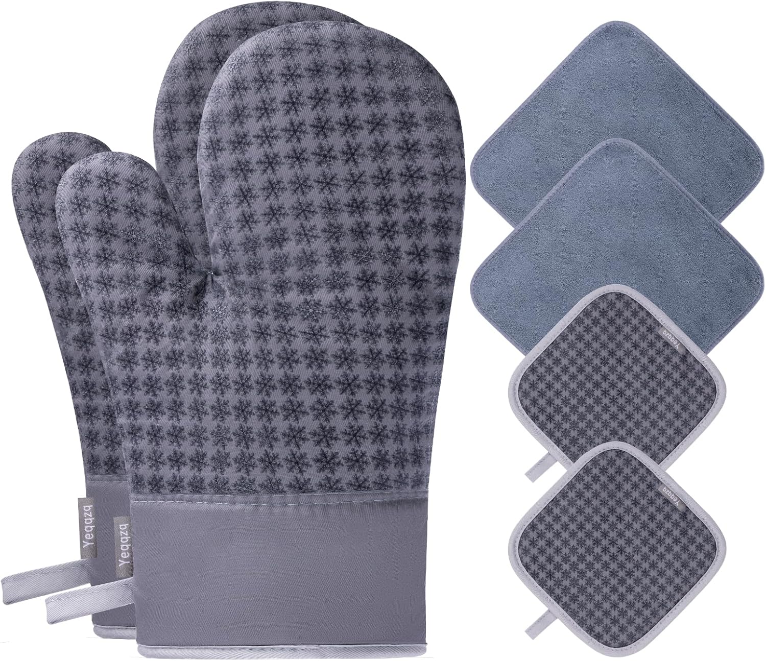 Yeqqzq 6-piece Oven Mitts, Pot Holders & Kitchen Towels Set (Grey)