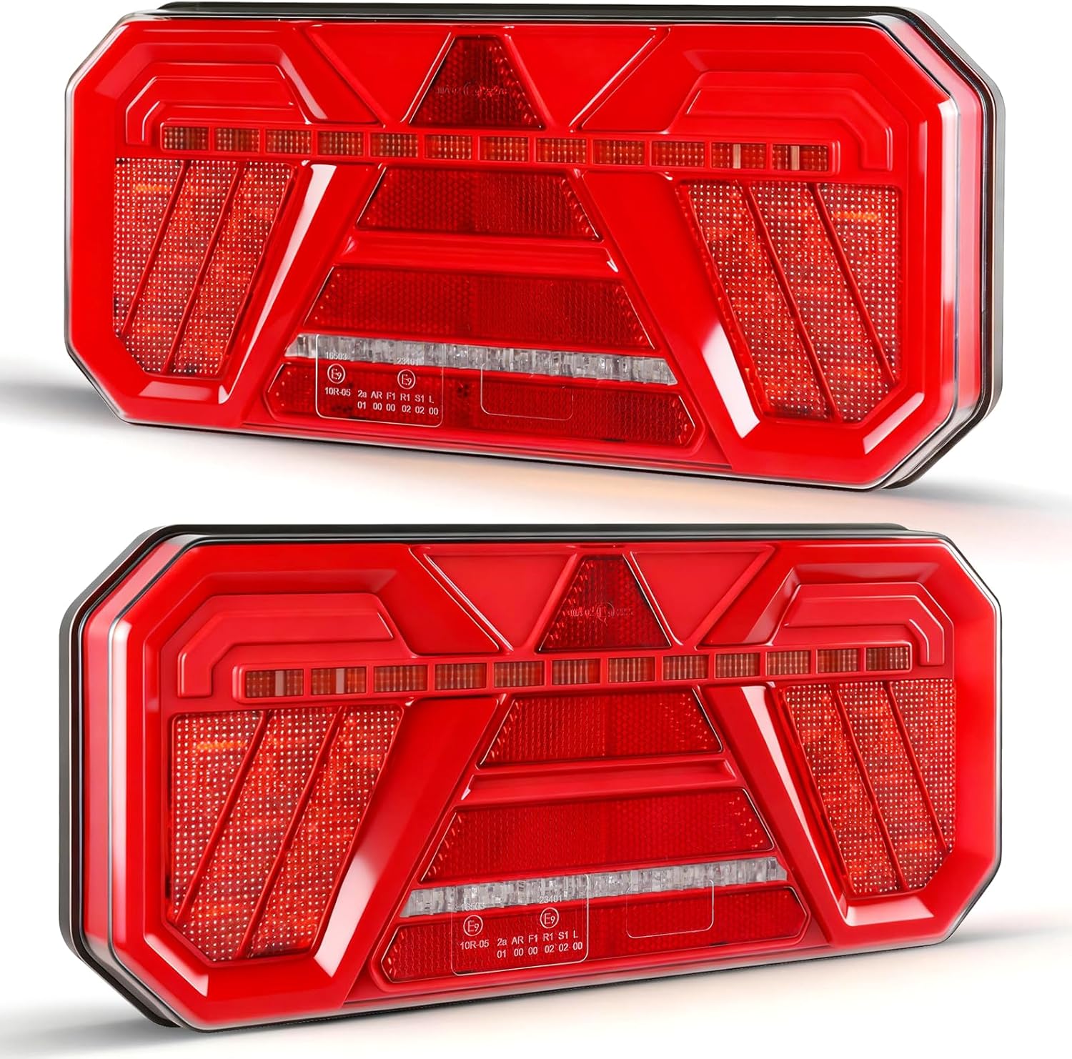 This Yuanjoy 2‑piece LED trailer rear light set is designed for use on trailers and similar vehicles where you want a bright, multi-function rear lighting setup in one go. On paper it covers the usual rear lighting jobs: driving/running, braking, dynamic indicators, reverse, a rear fog function and even a licence plate light. For anyone doing a trailer, van, caravan or truck update, that “all in one unit” approach can be handy because you’re not hunting multiple separate components.