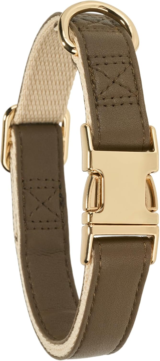 YUDOTE Soft Leather Dog Collars (Medium) with Safety Quick-Release Metal Buckle – Coffee Natural Cotton Padded