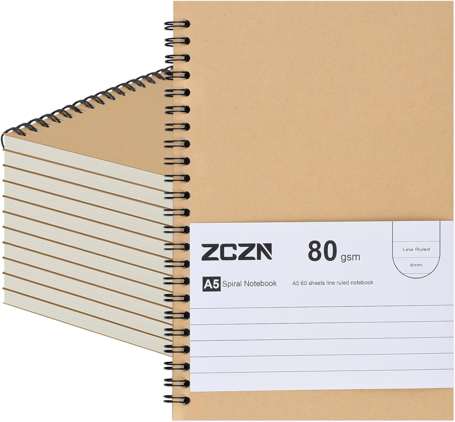 If you’re the kind of person who always ends up short on notebooks, this ZCZN A5 lined notebook 12-pack is designed to cover you for school, study and office use without making things complicated. On paper, it’s a straightforward lined spiral notebook set: A5 size, 60 sheets (120 pages) per notebook, and a kraft cover that’s meant to be easy to carry around in a bag.