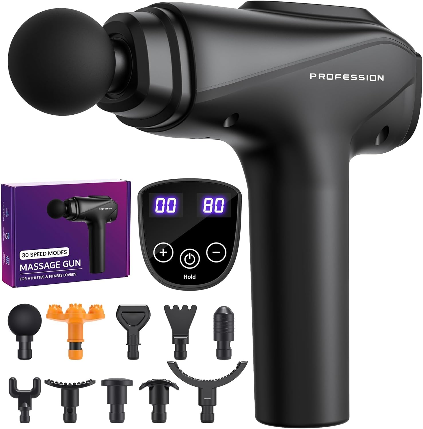 Massage Gun Deep Tissue 16-Head Mini Percussion Massager with 30 Speeds (2000mAh...