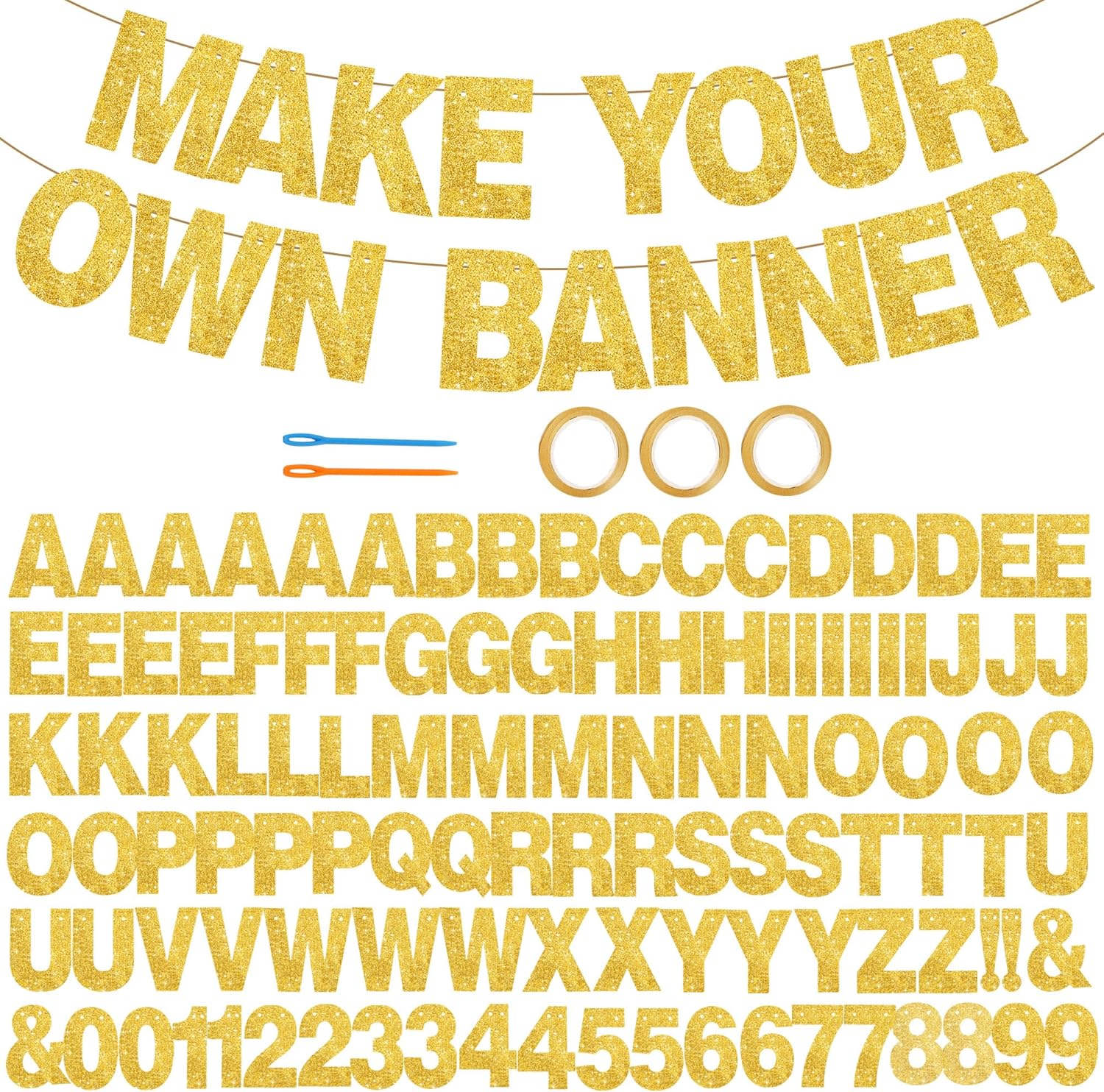 BEISHIDA 116 PCS Glitter Gold Letter Banner Kit 🎉