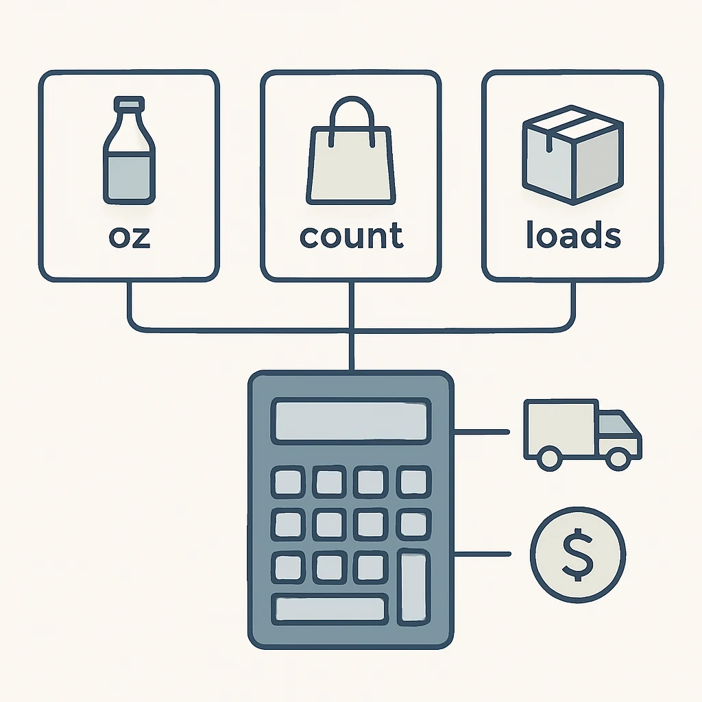 - detergent: price per load (your load, not the bottle’s best-case)