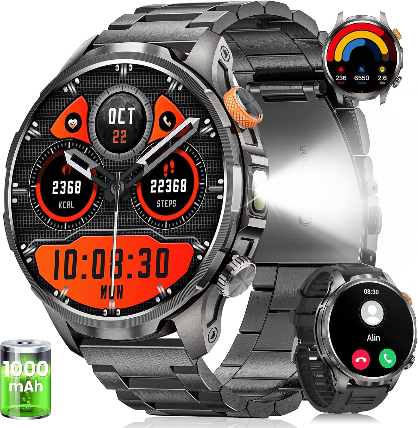 BANLVS Military Smart Watch for Men with 100 Days Battery, LED Flashlight, Heart Rate & SpO2
