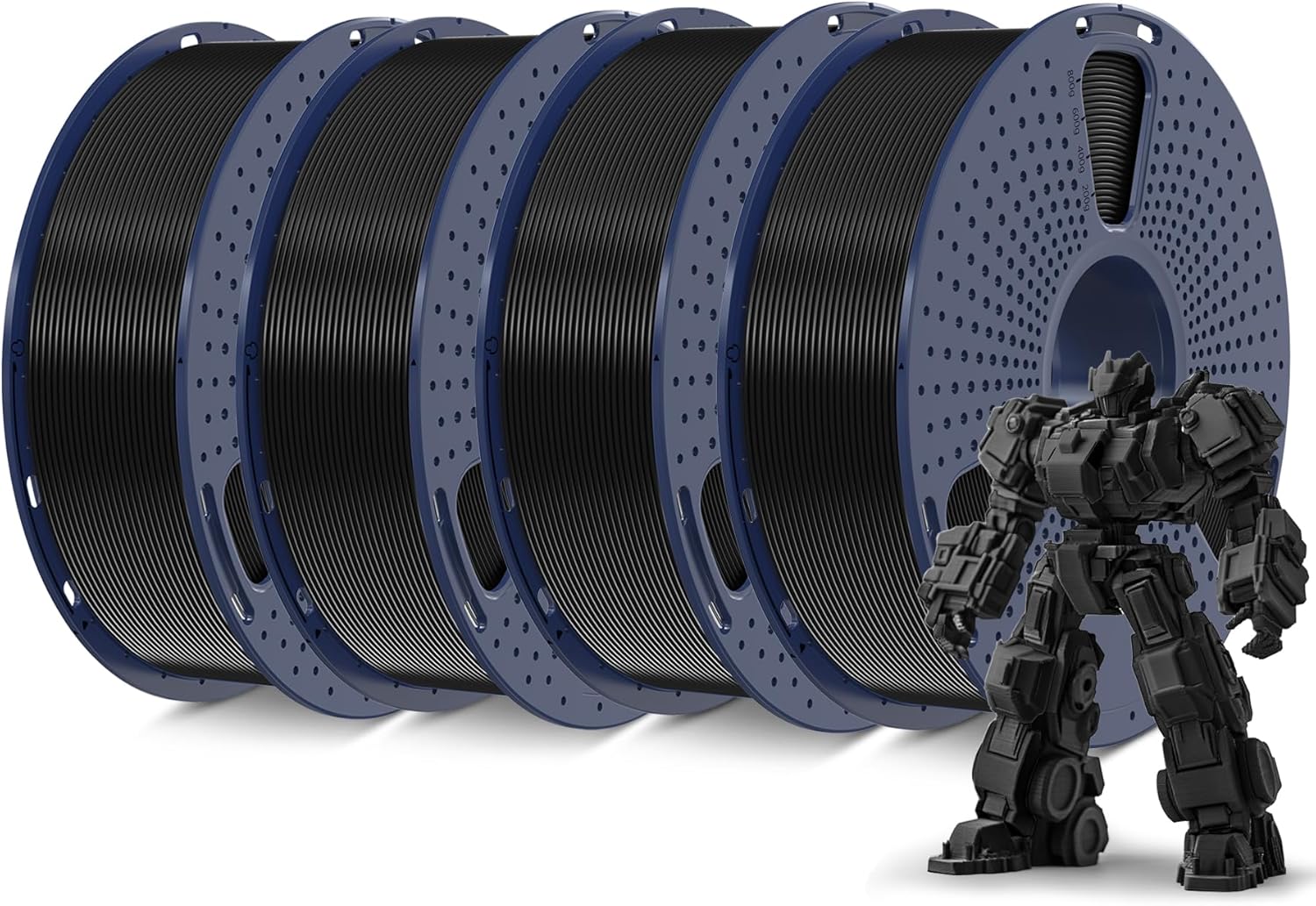 SUNLU PLA Plus 1.75mm 3D Printer Filament Bundle (4 x 1kg), Black