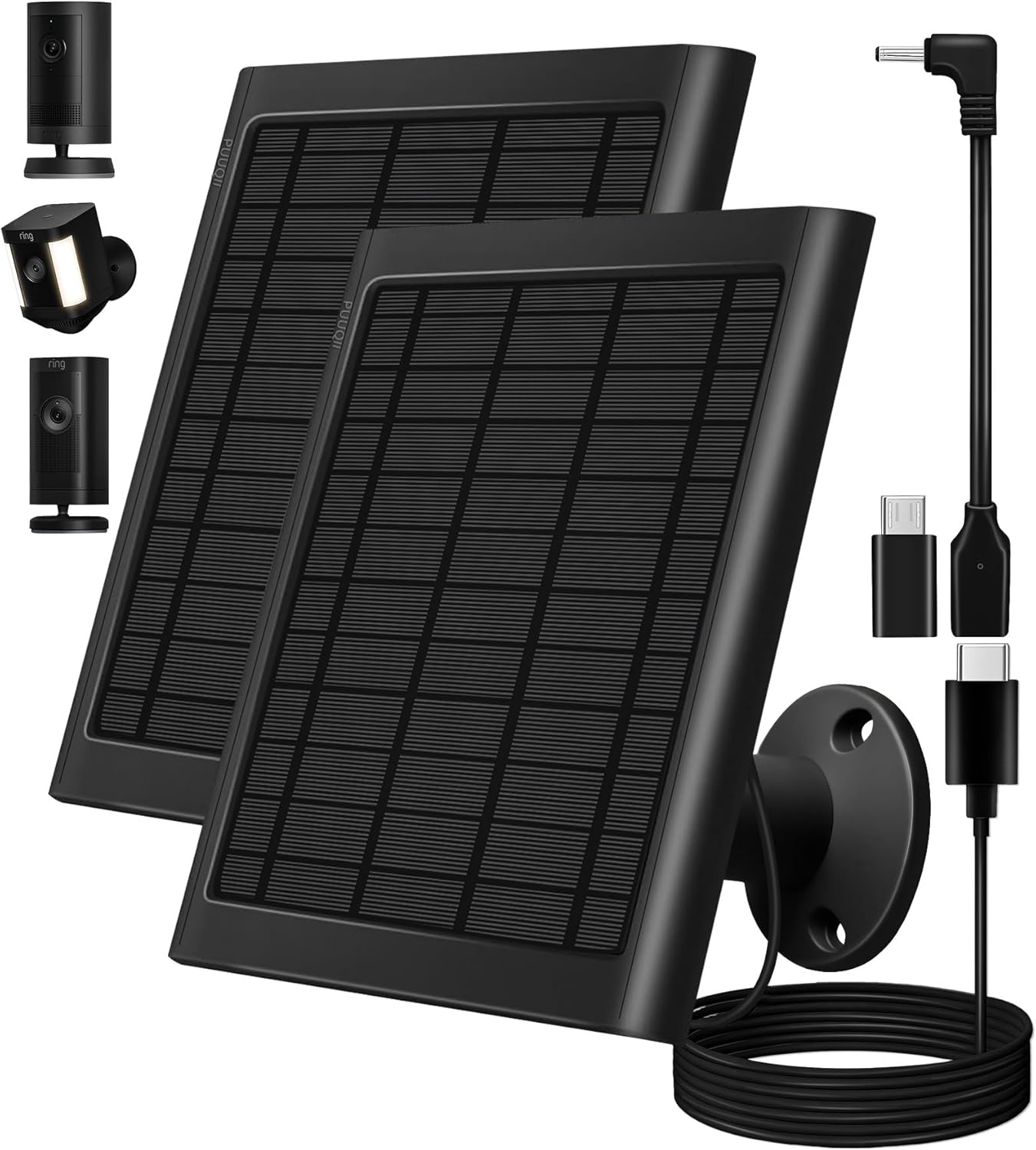 PUUQII 8W Solar Panel for Ring Camera (2-Pack) with 10ft Cable, IP65 Waterproof