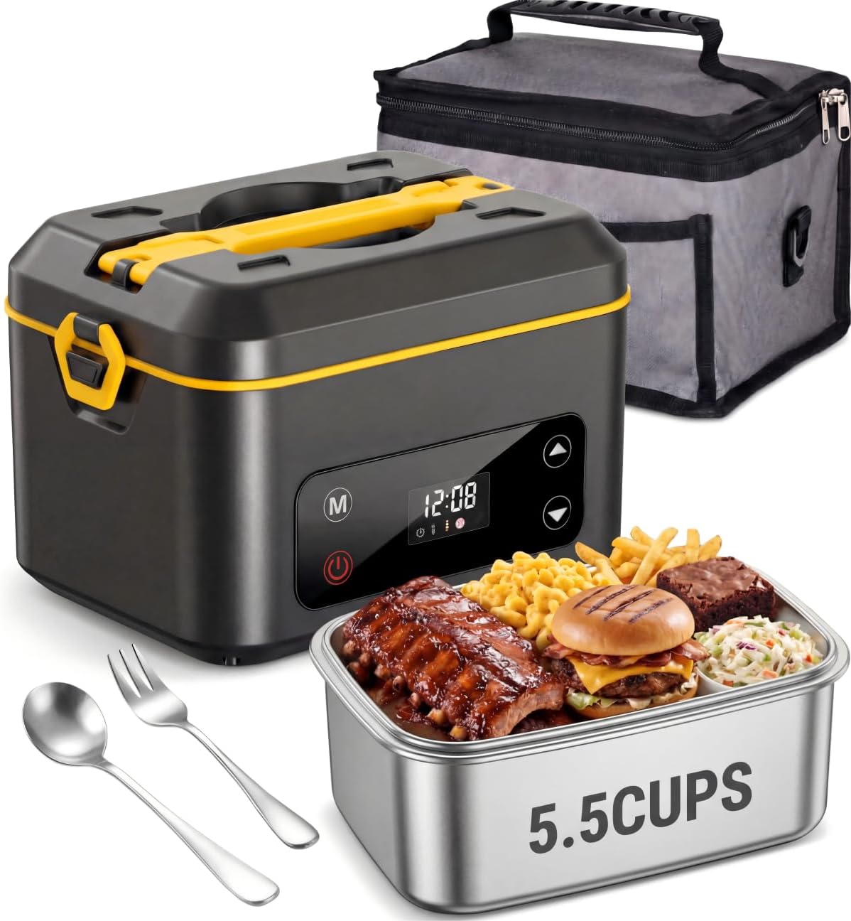 EAST OAK Heated Lunch Box for Men (Cordless Electric) — 5.5 Cups, Rechargeable S...