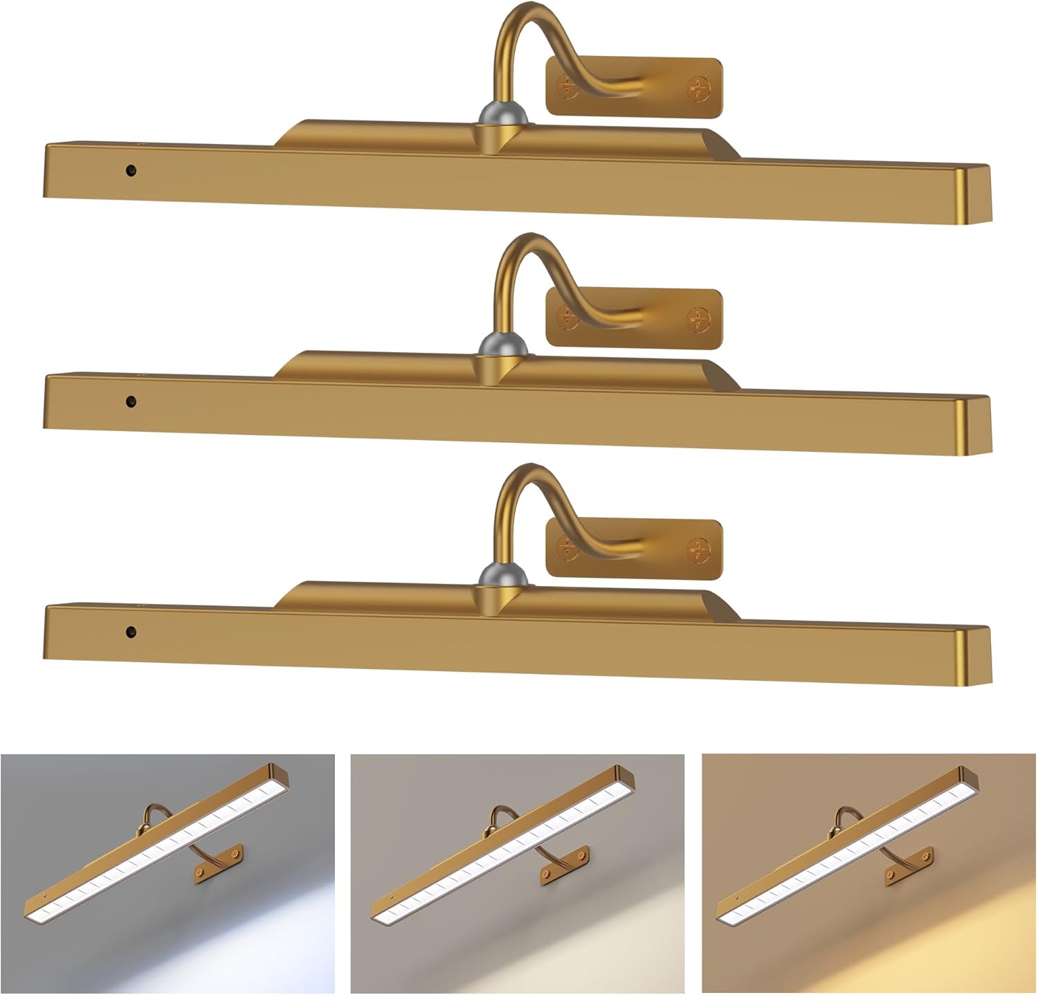 Craftersmark Picture Light Battery Rechargeable (3-Pack) with Remote, 3 Color Modes, Dimmable, Timer — Antique Gold