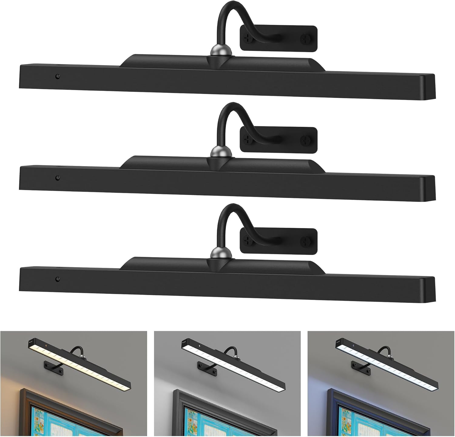 3Pack Picture Light Battery Operated (16in) with Remote, Dimmable Cordless Wall Lights for Art, Photo Frames, Dartboard (Black) — 5000mAh