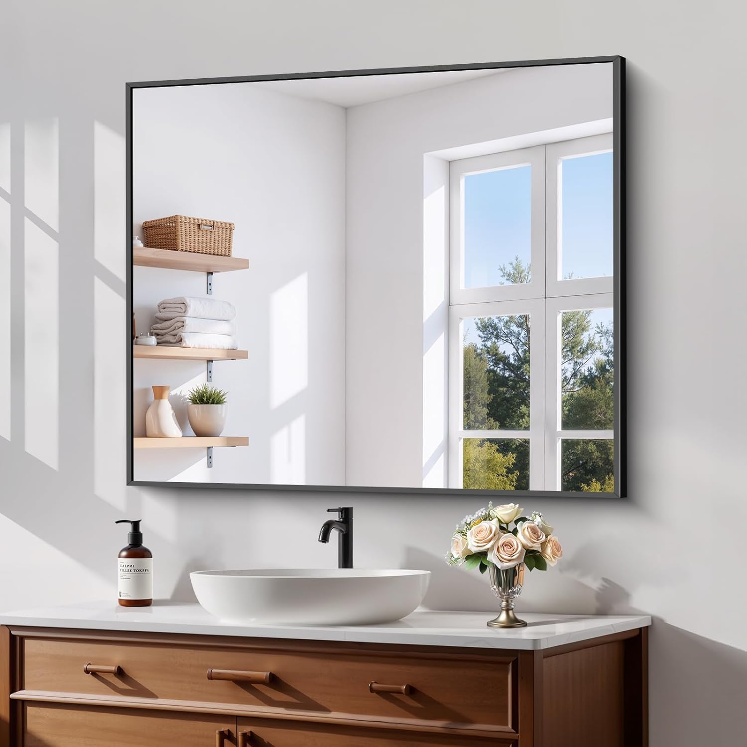 Koonmi Black Framed Bathroom Mirror — 30x36, Shatterproof Tempered Glass with Matte Aluminum Frame