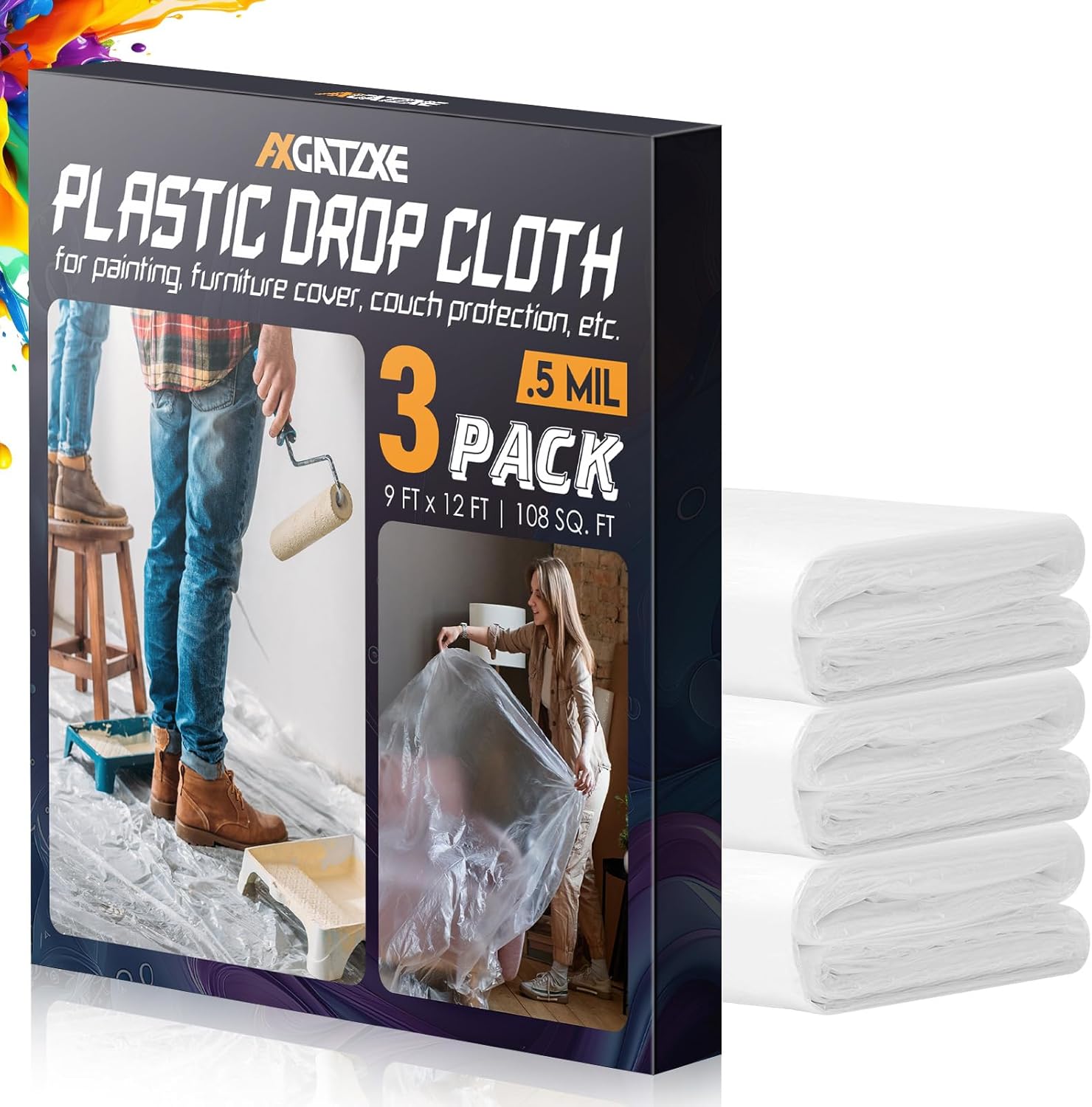If you’ve ever tried to paint and ended up with dust, drips, or “where did that mess come from?” moments later, these 12 x 9 ft plastic drop cloths are meant to prevent that headache. This 3-pack of disposable painter’s sheeting gives you big coverage for protecting floors and furniture during messy projects.
