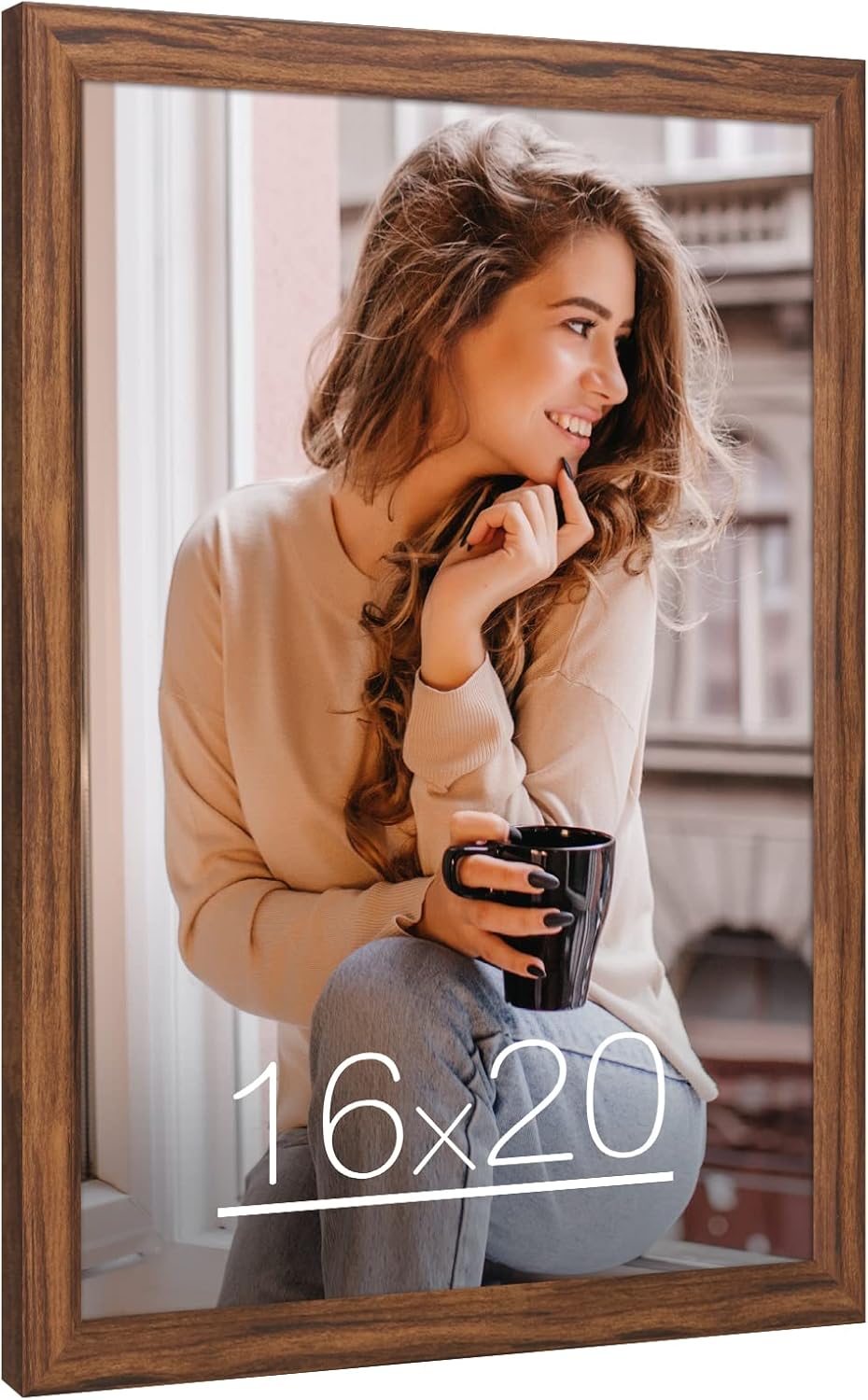 16x20 Wood Frame Brown (20x16 option) Rustic Natural Woodgrain Picture Poster Frame with HD Plexiglass