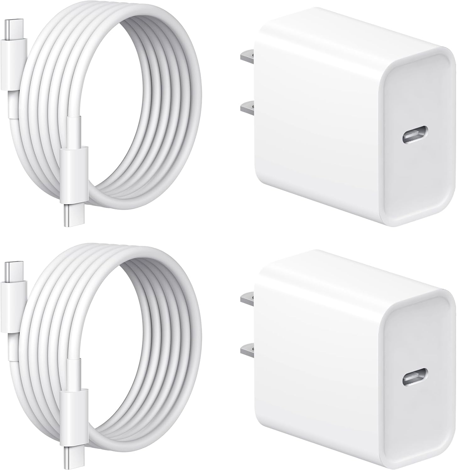 - 20W USB-C Fast Charger for iPhone 17/16/15 and iPad 12/11 (Type C to C) — 2-Pack Wall Plug + 6ft Cables