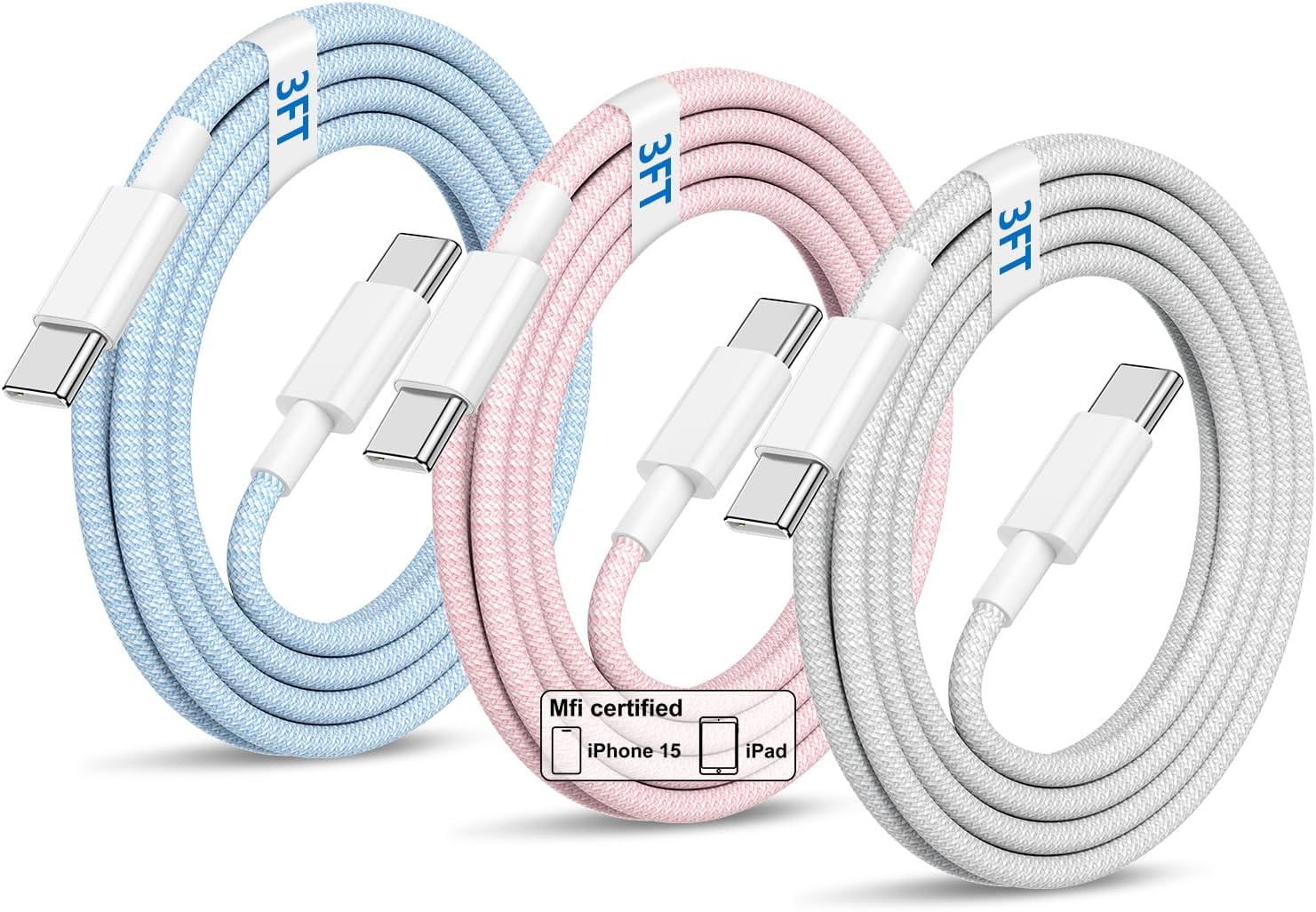 - Certification mention: “MFi certified” is stated in the description for the USB-C to USB-C 3ft charging cable