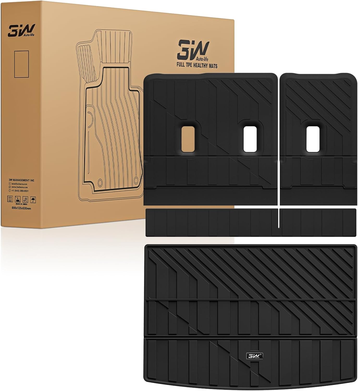 3W Cargo Liner + Backrest Mats (TPE) for 2021-2026 Chevrolet Suburban / Yukon XL (only) / Escalade ESV (only)