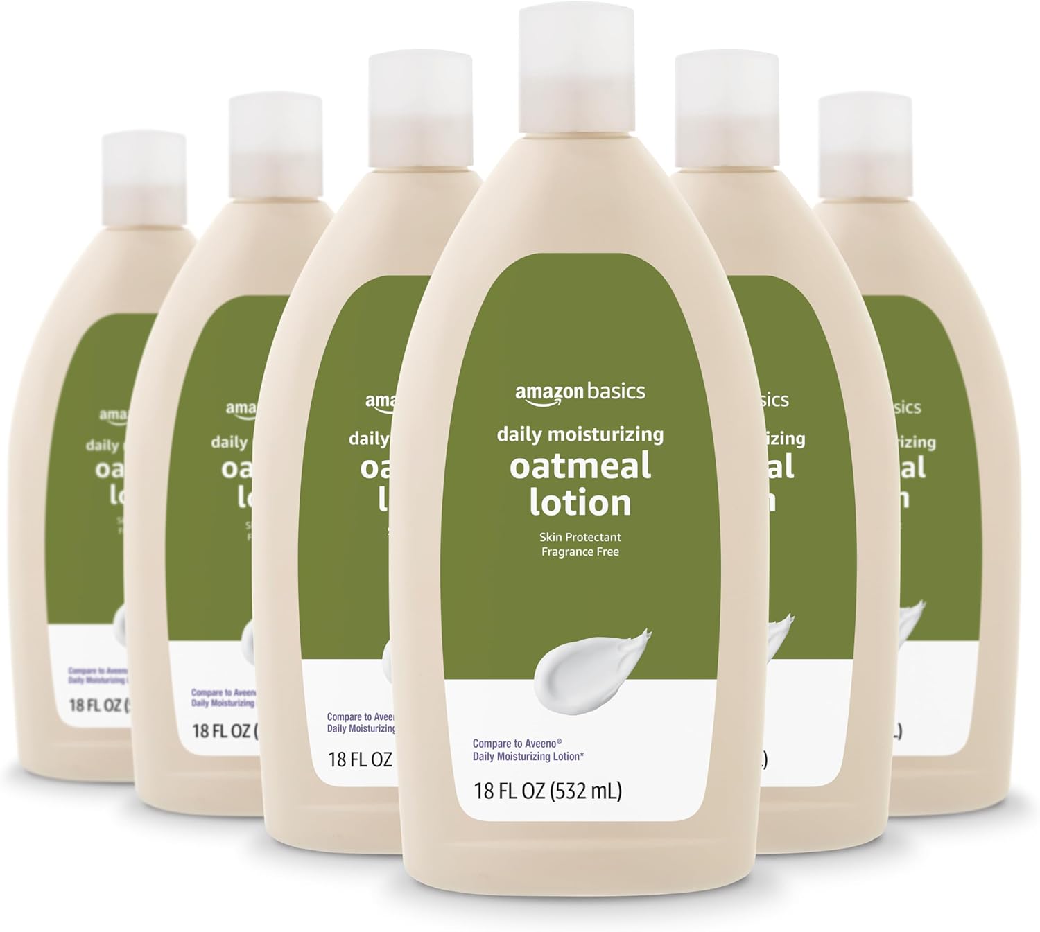 Amazon Basics Daily Moisturizing Oatmeal Body Lotion (Fragrance-Free, Non-Comedogenic) — 18 fl oz (Pack of 6)