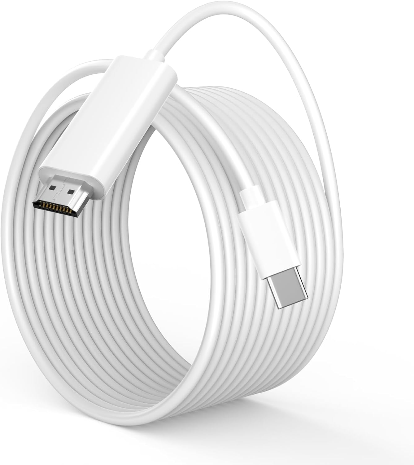 This USB-C to HDMI cable from Smilebridge lets you mirror or extend your phone or tablet screen to a TV, projector, or monitor with support for up to 4K at 60Hz, making it useful for streaming videos, sharing photos, or giving presentations. The 6-foot wired adapter connects directly to USB-C ports on compatible iPhone 15/16/17 models and many tablets and Android phones for a straightforward plug-and-play display link.