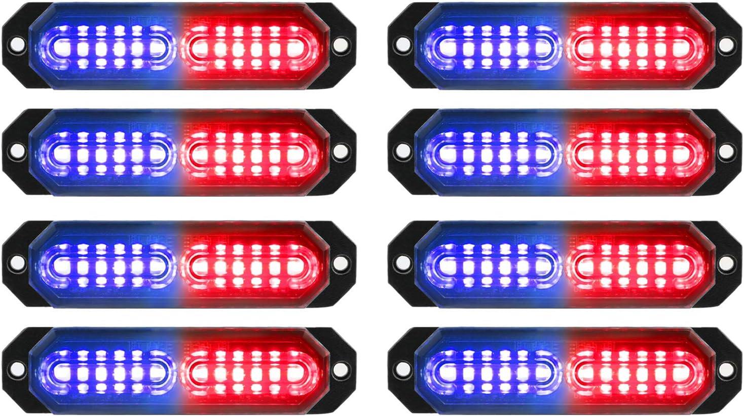 ASPL 8-pack Sync Feature Ultra Slim 12-LED Surface Mount Strobe Lights (Red/Blue)