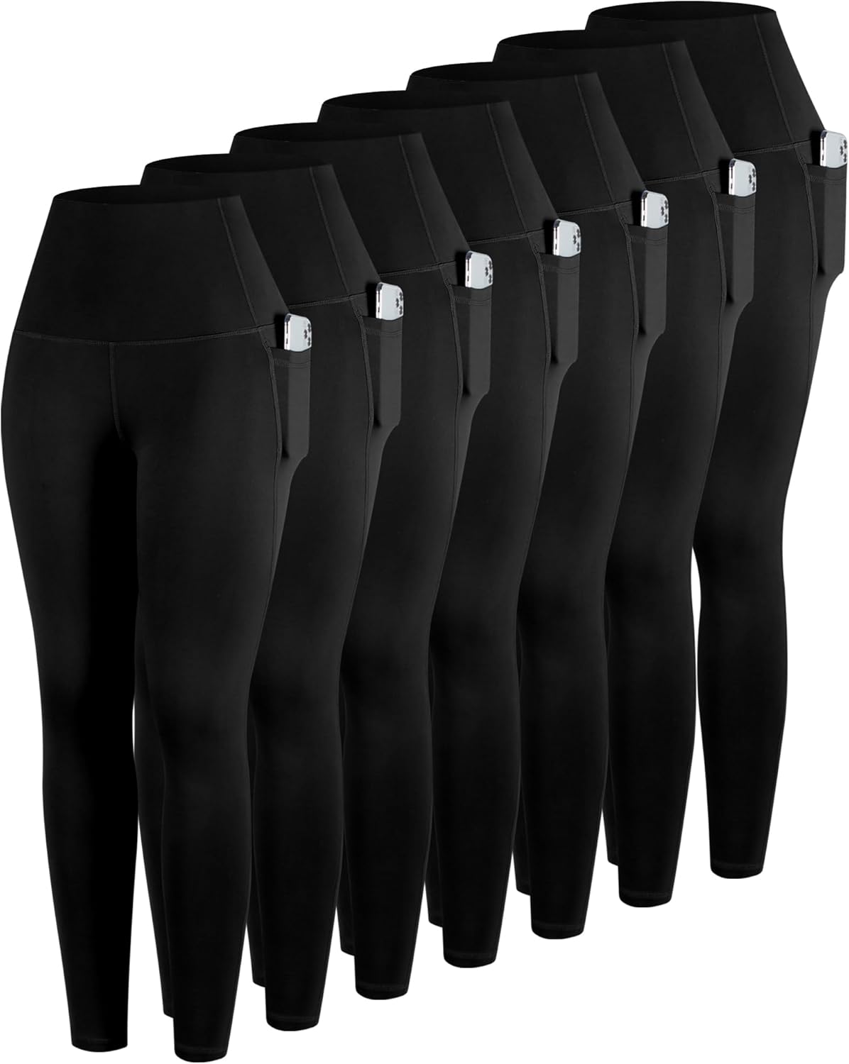 The pack includes seven pairs in multiple colors for rotation across the week, giving value without sacrificing performance. Each pair has 2 side deep pockets that hold a cell phone, keys, or cards so you can go hands-free during a run or a gym set. Fabric blends polyester and spandex for a soft, four-way stretch feel that resists see-through issues during squats. The high waist design provides gentle tummy control and a smooth silhouette, while the gusseted crotch and interlock seams reduce chafing for longer sessions. 👟