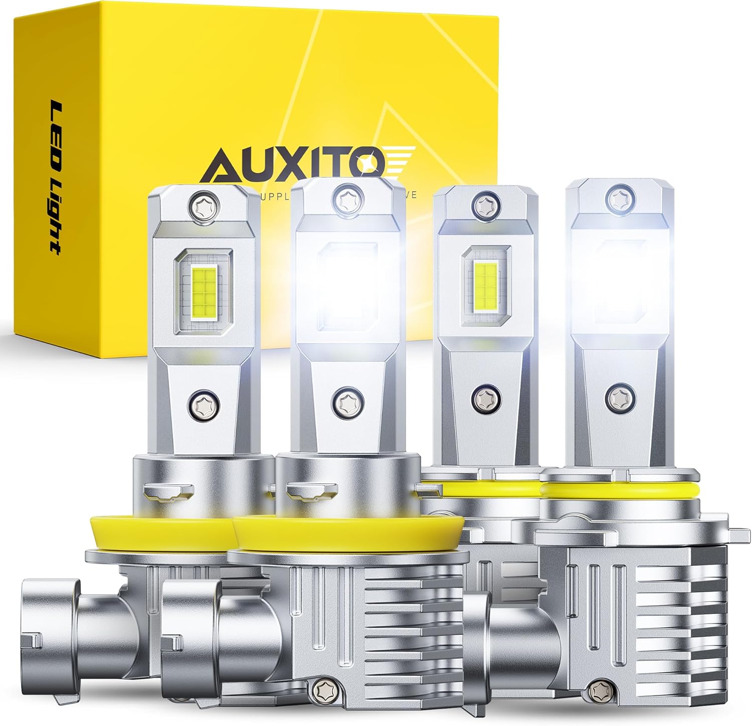 AUXITO 9005 H11 LED Bulbs Combo — 100000 Lumens, 6500K Cool White, CAN-Bus Ready, 4 Pack