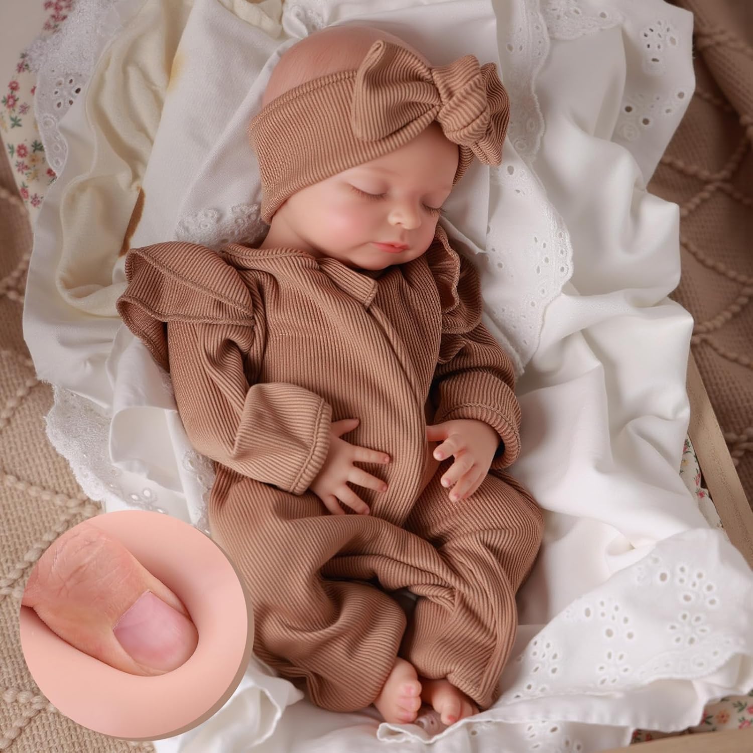 This is a 16-inch (40 cm) reborn baby doll made with full-body platinum silicone. It’s positioned as a newborn/preemie-sized doll for realistic interactions—think bathing, dressing, and hands-on pretend play. The product description emphasizes a lifelike look: delicate features, hand-painted details, and hand-rooted eyelashes. There’s also a “soft little hands curled up in sleep” vibe, which tends to appeal to collectors and kids who like a calm, sleeping-baby presentation.