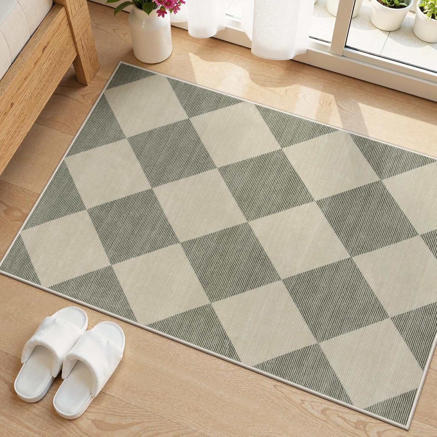 Beeiva Checkered Washable Entryway Rug 2x3 (Ultra Thin, Non-Slip) in Green